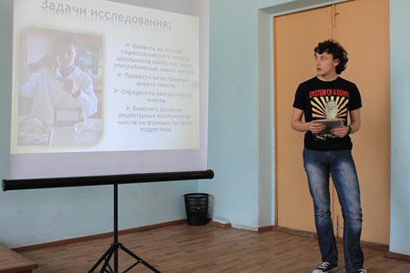 | Выступление с докладом на тему "Чипсы - вред или польза" ученика 10 класса Лагуткина Сергея |