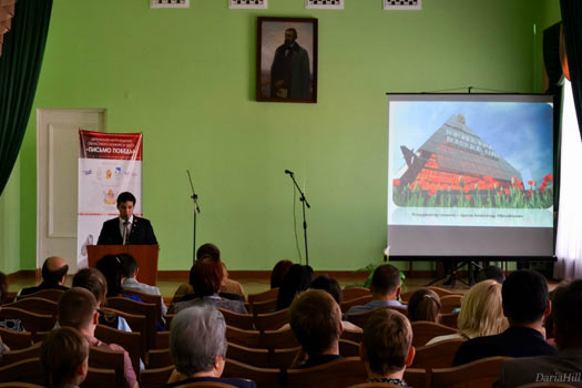 Главная >> Новости >> 22 сентября 2015 г. 20 сентября студенты ВГУИТ приняли активное участие в церемонии награждения победителей конкурса эссе «Письмо победы», организованной ВРКПОО «Наша история» в Воронежской научной библиотеке имени И.С. Никитина. Ксения Косташ, Павел Суханов, Александр Цыков выступили в роли ведущих церемонии, исполнителей, организаторов.