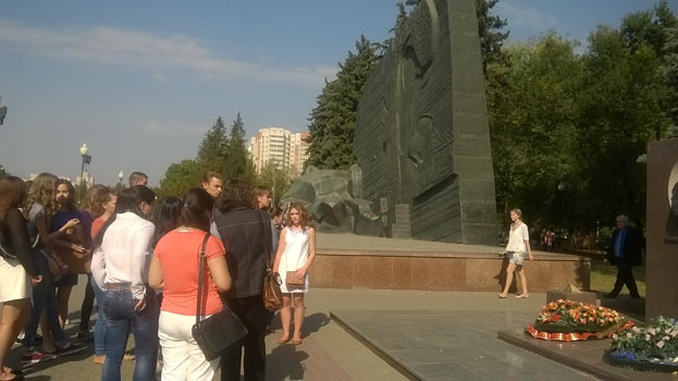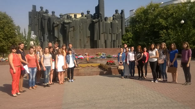 Маршрут экскурсионной группы начался от площади Победы. Студенты возложили цветы к памятнику.