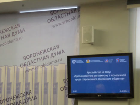 Главная >> Новости >> 8 февраля 2016 г. «Противодействие экстремизму в молодежной среде современного российского общества»5 февраля представители ВГУИТ приняли участие в работе круглого стола на тему «Противодействие экстремизму в молодежной среде современного российского общества», прошедшем в малом зале Воронежской областной Думы. Среди организаторов мероприятия – Федеральное агентство по делам национальностей РФ, Правительство Воронежской области, Молодежная Ассамблея народов России «Мы – Россияне», Национальная палата при губернаторе Воронежской области. ВГУИТ на круглом столе представляли заместитель председателя Национальной палаты при губернаторе Воронежской области проф. Г.О. Магомедов, проф. Г.А. Быковская, студенты группы ЭС-51: Маргарита Демехова, Виктория Орлова, Анастасия Панкова, Анастасия Ярцева. На круглом столе состоялось обсуждение докладов ответственного секретаря комиссии по вопросам информационного сопровождения государственной национальной политики совета при Президенте РФ по межнациональным отношениям А.Н. Худолеева, заместителя председателя Воронежской областной Думы С.И. Рудакова, Г.О. Магомедова (об опыте работы Национальной палаты области), секретаря межконфессионального консультативного Совета при Воронежской областной Думе А.К. Никифорова, начальника отдела проектно-программной деятельности в молодежной среде департамента образования, науки и молодежной политики Воронежской области С.М. Афанасьева и других.